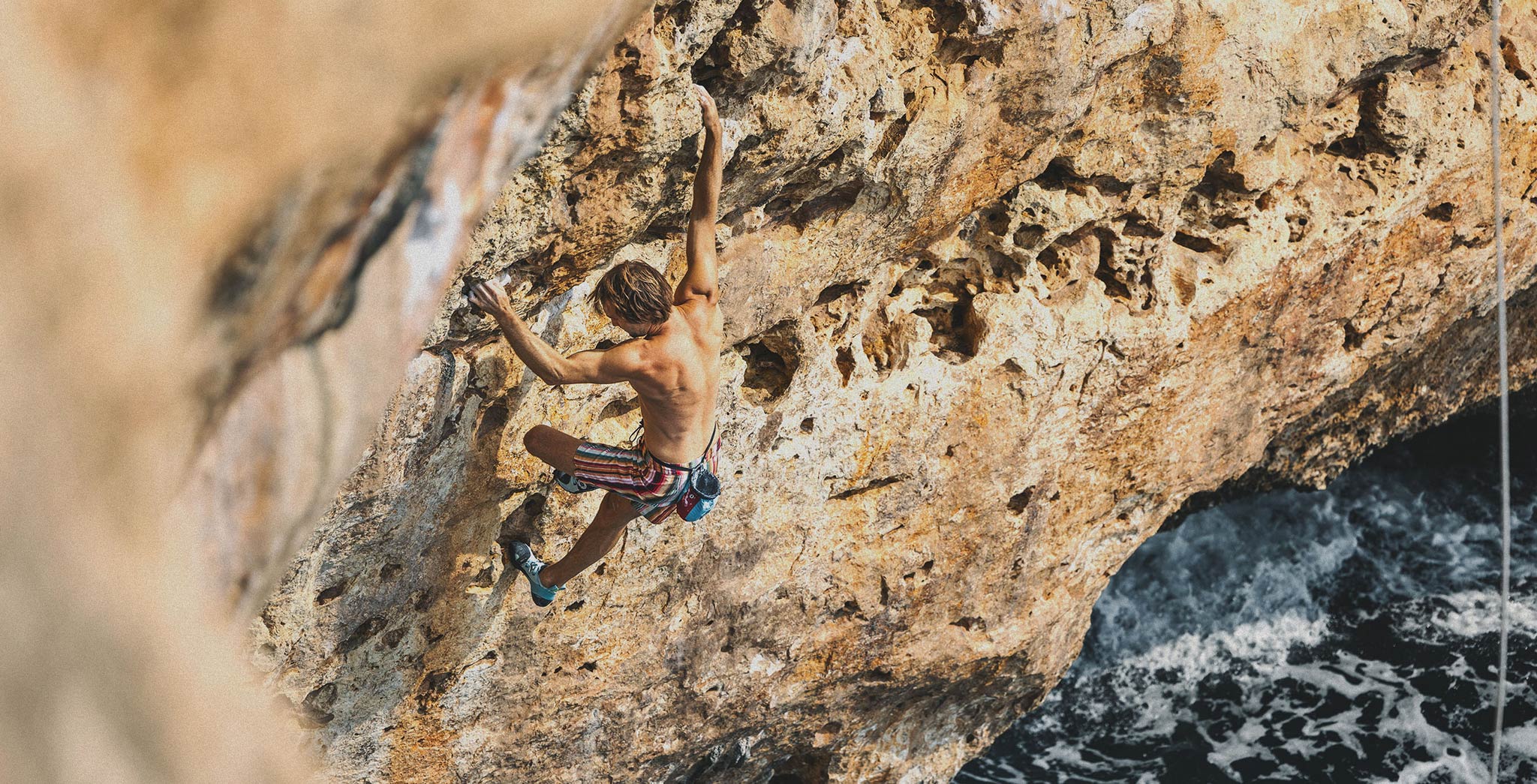 Experience the thrill of psicobloc in Mallorca with Chris Sharma—a discovery of the wildest side of the island and the essence of this unique climbing style in the Mediterranean Sea.
