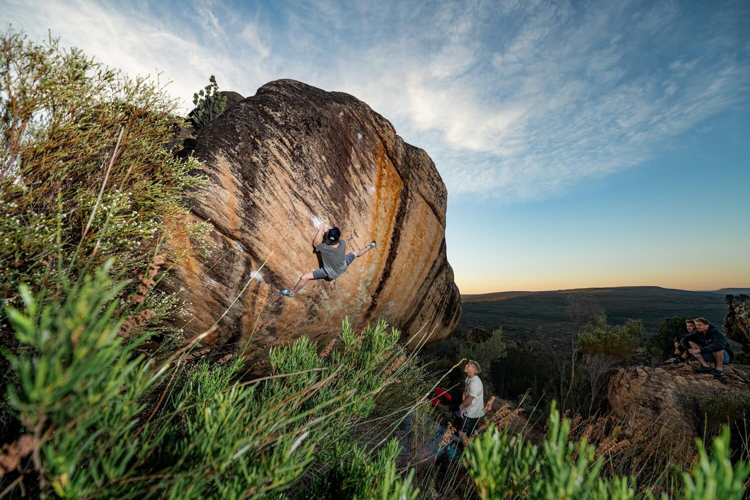 “Rocklands is a place of extraordinary beauty with its world-class boulders, alien landscapes, and indescribable atmosphere,” said Vadim Timonov. The bright orange sandstone boulders on the edge of South Africa’s Cederberg Mountains have become a mecca for bouldering with more than 2800 problems. Since 2019, Timonov has been a staple of hard climbing in Rocklands. In his four visits and around 35 days of climbing, he’s amassed a tick list of some of the hardest and highest boulders including the first ascent of G-Master (8C) to sending The Finnish Line(8C) to flashing Mirta (8B+). Pushing the grades that far required planning, physical and mental preparation, and the correct mindset for success. These attributes helped Timonov succeed.